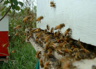 With the new queen bee up and running, the old Queen flies away with up to fifty percent of the hive (up to 50,000 bees including drones) to form a new hive. The Queen Bee can lay approximately 1,000 to 1,500 eggs a day starting late in February. She is fed and groomed by her loyal servants. Unable to feed or groom herself, her main purpose is to lay eggs to keep the hive surviving.