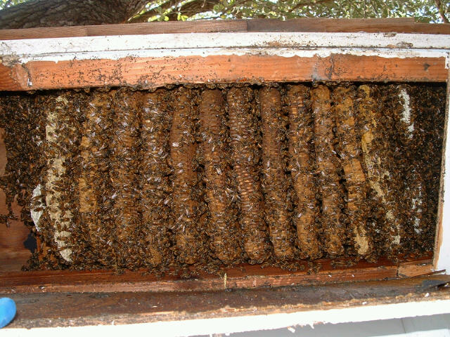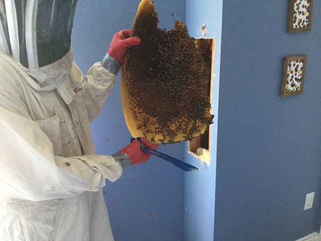 If a hive is poisoned rather than removed, the honey will melt and robber bees from other bee hives will come and carry the poisoned honey to their hives which, in turn, will poison their own colony. Some hives poisoned have had up to 50 pounds of honey. When hives are poisoned before the nest is removed, the surviving bees become more aggressive. Where possible, Bee Charmer safely removes part of the wall of the house in order to remove the nest, which includes the honey, comb, eggs, and bees. The colony is then transferred to a new hive.