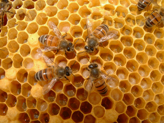 Before the new queen bee hatches, she is nourished with Royal Jelly, which is made of digested honey or nectar and mixed with pollen and is rich with vitamin B. The royal jelly produced by the nurse bees have been evaluated by scientists. When royal jelly is fed to various animals such as pigs and chickens the life span increases to 30%. Chickens increase twice the egg production. Older chickens were able to produce more than expected.